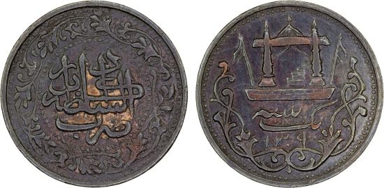 This specimen was lot 1436 in Stephen Album sale 50 (Santa Rosa, CA, September 2024), where it sold for $660. The catalog description[1] noted, "AFGHANISTAN: Abdur Rahman, 1880-1901, AE paisa, Kabul, AH1309, broader size (24mm), weight remained the same, but later issues, starting in AH1309, were thicker and narrower, VF-XF, RRR, ex Hakim Hamidi Collection." Milled coinage was introduced to Afghanistan during the reign of Abdur Rahman (1880-1901). Several paisa were struck in AH 1309; this one at 24 mm, KM 801 (scarce) at 20 mm and KM 802 (common) at 21-21.5 mm diameter