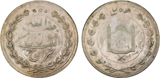 This specimen was lot 3551 in Stephen Album sale 50 (Santa Rosa, CA, September 2024), where it sold for $102. The catalog description[1] noted, "AFGHANISTAN: Habibullah, 1901-1919, AR rupee, AH1326, excellent strike, VF-XF, ex Hakim Hamidi Collection." Milled coinage was introduced to Afghanistan during the reign of Abdur Rahman (1880-1901). We don't see KM 843 in our edition of the SCWC, which notes KM 842.2 for this date. Each die was handmade, so many varieties exist.