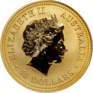- 2002 50 dollars, ½ oz Kangaroo Gold, with Liberty Bell sticker