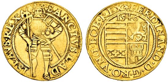 "HOLY ROMAN EMPIRE - AUSTRIA, Ferdinand I. 1521-1564. Dukat 1546, Linz. Sehr selten. Sehr schön-vorzüglich. Kleine Kratzer. (Holy Roman Empire, Ferdinand I, 1521-64, ducat of 1546, Linz mint. Very rare, Very fine-extremely fine, Small scratches.)"