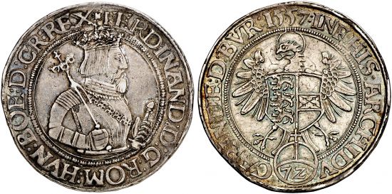 This type of 1557-58 shows the king (he did not become emperor until 1558) with a beard, which he adopted in the 1550's and wore until his death in 1564.