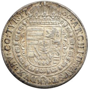 This specimen was lot 3859 in Goldberg sale 70 (Los Angeles, September 2012), where it sold for $264.50. The catalog description[1] noted, "Austria. Taler, 1700 (Hall). Leopold I. Obverse fields have been tooled. Extremely Fine." This type was struck at the Hall mint 1694-1704 and at Graz in 1698 in numerous varieties (Dav-3241, -3243, -3244, -3245A). It is fairly common. It seems unlikely that the emperor was ever called "the Hogmouth" to his face.