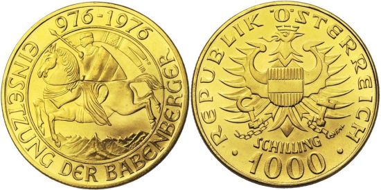 This commemorative was the first issue of this denomination, which has been used since for various gold commemoratives of various weight standards. The appearance of the Babenbergs marks Austria's emergence into history out of the Dark Ages.