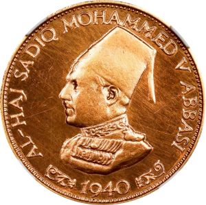 This specimen was lot 42310 in Stack's Bowers ANA sale (Chicago, August 2024), where it sold for $2,160. The catalog description[1] noted, "INDIA. Bahawalpur. 1/2 Pice, AH 1359 (1940). Bahawalpur Mint. Sadiq Muhammad Khan V (under George VI as Emperor). NGC PROOF-65 Red. RARE, is perhaps an understatement to describe the paucity of proof issues from Bahawalpur from the princely period. This example, previously residing in the David Fore collection, is one of only two examples certified as proof by NGC with none from PCGS. This specimen far exceeds the other, an impaired Proof-45. A stunner that is exceptionally well-struck, with rich mint Red and no evidence of handling, implying the excellent treatment of this specimen by previous owners. Pronounced die polishing is noticed in the fields, confirming the special striking nature of the piece. Sure to be desirable, as it will likely be some time until another proof example of the type comes to market. Ex: Yashoda N. Singh Collection. Ex: David Fore Collection (Baldwin's - 9/2013) Lot # 1234." The state of Bahawalpur lies in the southwest part of Punjab, in the Thar desert. The nawab also had struck a quarter anna. While this proof is rare, the circulation issue is common. The nawab was the first princely ruler to accede to the state of Pakistan, in October 1947; his state was formally abolished in 1955 and he died in 1966.