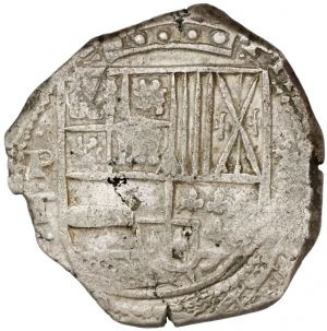 The first specimen was lot 576 in Sedwick Treasure Auction 28 (Winter Park, FL, November 2020), where it sold for $570. The catalog description[1] noted, "Potosí, Bolivia, cob 8 reales, (1)631T, cross-fleury ornament after date. Full and well-detailed shield and cross-lions-castles, bold final digit and partial 63 of date followed by complete cross-fleury, full dot-P-dot-T-dot and clear cross-fleury above denomination, low-contrast XF with minor flan-crack." The second specimen was lot 72043 in Stack's Bowers Collectors Choice Online Auction (Costa Mesa, CA, October 2024), where it sold for $384. The catalog description[2] noted, "BOLIVIA. Cob 8 Reales, 1631-P T. Potosi Mint. Philip IV. PCGS Genuine--Environmental Damage, VF Details. A well-struck and centered obverse, with visible mintmark, assayer, denomination, and partial king's name. On the reverse, the final two digits of the date are clear. From the S.P. Rutherford Collection." The Potosí mint was the second mint in the western hemisphere to date its products. Dating began in 1617.