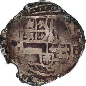 This specimen was lot 71090 in Stack's Bowers Collectors Choice sale (Costa Mesa, CA, November 2022), where it sold for $720. The catalog description[1] noted, "BOLIVIA. Cob 4 Reales, 1645-P. Potosi Mint; Assayer Juan Jimenez de Tapia (T). Philip IV. PCGS Genuine--Environmental Damage, VF Details. This 4 Reales piece exhibits pleasing gray surfaces and attractive central devices. The rims are somewhat corroded, which accounts for the designation, but most of the date is visible, including the truncated final digit. The obverse displays the assayer's initial, which, combined with the date, indicates the coin was made during Tapia's third period as assayer. That makes this a rather RARE issue, unlisted in either Krause or Calico. A lovely example, rich with eye appeal and unmistakable details. From the Pat Johnson Collection. Ex: Freeman Craig." The mountains around Potosi contained enormous amounts of high grade silver ore, a situation the Spanish were not slow to exploit. A mint was set up in the 1570's to process the silver mined there. The early products of the reign of Philip II are fairly good quality but rot set in during the following reign, including fraudulent debasement. This type was struck 1622-47, throughout the first part of the reign of Philip IV. Dates were added in 1617; even so, many are so crudely made that the dates are not legible. This type is rare; it was never made in large quantities and nearly all melted down in the great remintage of 1649-52 when the debased cobs were called in. Assayer T operated 1626-36 and 1643-48 and was probably deeply implicated in the debasement fraud.
