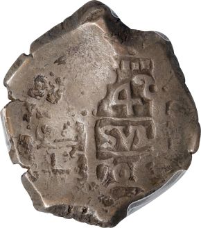 This specimen was lot 71181 in Stack's Bowers Collectors Choice sale (Costa Mesa, CA, November 2022), where it sold for $288. The catalog description[1] noted, "BOLIVIA. Cob 4 Reales, 1706-P. Potosi Mint; Assayer Diego de Ybarbouru (Y). Philip V. PCGS VF-35. This deeply toned 4 Reales Cob offers some good details despite a rather crude strike on an irregular flan. The obverse displays a bold denomination and a clear date along with remnants of an assayer's initial. The reverse suffers from weak strike and doubling and thus lacks most of its details, save for the upper lion. A charming piece regardless of its limitations. From the Pat Johnson Collection." This type was struck for Philip V through his entire reign--unlike in Europe, his rule was never challenged in America. Assayer Y stamped coins 1701-28.