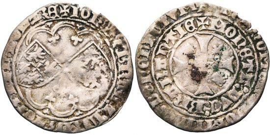 "BRABANT, Duché, Jean IV (1415-1427), AR double gros drielander, 1420-1421, sans nom d'atelier (Bruxelles). Au titre de comte de Hainaut, de Hollande et de Zélande. D/ Dans un polylobe orné de lis, les écus inclinés de Brabant-Bourgogne et de Hainaut. En dessous, un lis. R/ Croix pattée cantonnée de deux fleurs de lis et de deux lions. En légende intérieure: MONETA: DVC: BRABANTIE. Extrêmement rare. Beau à Très Beau. (duchy of Brabant, John IV, 1415-27, silver double groat of 1420-21, Brussels mint but without mintmark. Struck in the name of the count of Hainaut, Holland and Zeeland. Obverse: within an ornate polylobe, the titled arms of Brabant-Burgundy and Hainaut, fleur-de-lys below; reverse: cross pattée cantonned with two fleur-de-lys and two lions and double row legend. Extremely rare, Fine - Very Fine.)"