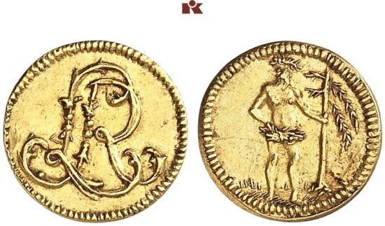"BRAUNSCHWEIG UND LÜNEBURG, BRAUNSCHWEIG-WOLFENBUTTEL, Ludwig Rudolf, 1731-1735, seit 1714 in Blankenburg. 1/4 Dukat o. J. ohne Münzzeichen. GOLD. RR Winz. Kratzer, vorzüglich. (Germany, duchy of Brunswick-Wolfenbuttel, Louis Rudolf, 1731-35, duke in Blankenburg since 1714, undated quarter ducat. Rare, light scratches, extremely fine.)"