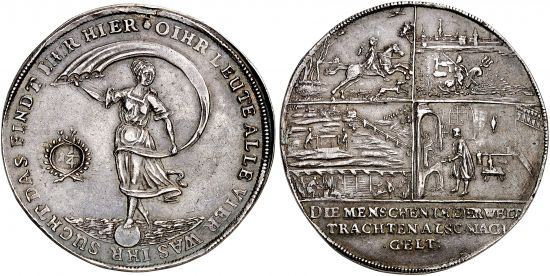 "BRAUNSCHWEIG-WOLFENBÜTTEL, HERZOGTUM Friedrich Ulrich, 1613-1634. Löser zu 1 1/4 Reichstalern o. J. (1622), Andreasberg. Ausbeuteprägung. Sogenannter Glückslöser. Mit geprägter Wertzahl. Preussag Collection (Auktion London Coin Galleries/Künker 1) 56. RR Attraktives Exemplar mit hübscher Patina, sehr schön-vorzüglich. Siehe auch Müseler Band III. 10.2, Zuweisung dort nach Braunschweig-Lüneburg-Celle unter Christian, Bischof von Minden. (Germany, duchy of Brunswick-Wolfenbuttel, Frederick Ulrich, 1613-34, undated 1¼ "fortune" thaler, for the Andreasberg mine, denomination in cartouche. Rare, attractive example with handsome patina, very fine to extremely fine. See also Müseler, Volume III. 10.2, attributed to Braunschweig-Lüneburg-Celle under Christian, Bishop of Minden.)"