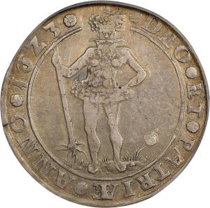This specimen was lot 55448 in Stack's Bowers ANA sale (Pittsburgh, PA, August 2023), where it sold for $384. The catalog description[1] noted, "GERMANY. Brunswick-Luneburg: Brunswick. Taler, 1623-HL. Goslar or Zellerfeld Mint. Friedrich Ulrich. PCGS EF-45. From the Robert C. Knepper Collection." This type was struck 1613-28 and is among the more common thalers of the period. This thaler, Dav-6303, was struck at Goslar and Zellerfeld while the very similar Dav-6306 was struck only at Clausthal. Duke Friedrich Ulrich ruled 1613-34.
