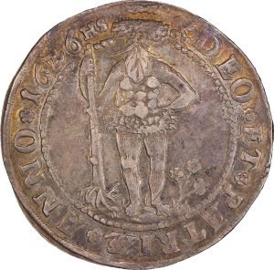 - 1625-HL thaler, wild man reverse, beaded inner border