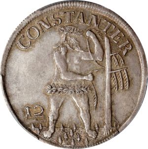 This specimen was lot 74628 in Stack's Bowers Collectors Choice sale (Costa Mesa, CA, November 2022), where it sold for $312. The catalog description[1] noted, "GERMANY. Brunswick-Luneburg: Brunswick. 12 Mariengroschen, 1714. Zellerfeld Mint; mm: crossed axes between HH. Anton Ulrich. PCGS MS-63. Handsomely toned and very well struck, this Choice specimen dazzles with some golden-olive toning accentuating the devices and with ample luster remaining around the legends. From the Robert C. Knepper Collection. Includes ticket from Muenzen und Medaillen Basel." This denomination was one half gulden or one third of a thaler. This type was struck 1711-14 and is common. Mintmaster HH appears 1711-19. The concurrent "leaping stallion" coin of the same weight was a one-third thaler.