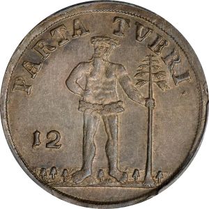 This specimen was lot 55519 in Stack's Bowers ANA sale (Pittsburgh, PA, August 2023), where it sold for $168. The catalog description[1] noted, "GERMANY. Brunswick-Luneburg: Brunswick. 12 Mariengroschen, 1723-EPH. Zellerfeld Mint. August Wilhelm. PCGS AU-58. From the Robert C. Knepper Collection." This type was struck 1714-31 and is fairly common. Twelve mariengroschen made one-third of a thaler or half a gulden.