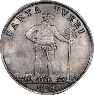 This specimen was lot 55514 in Stack's Bowers ANA sale (Pittsburgh, PA, August 2023), where it sold for $192. The catalog description[1] noted, "GERMANY. Brunswick-Luneburg: Brunswick. Taler, 1724-EPH. Zellerfeld Mint. August Wilhelm. Extremely Fine Details -- Harshly Cleaned, Edge Tooled. From the Robert C. Knepper Collection." This type was struck 1714-30 and is fairly common. Another thaler (Dav-2127), struck 1716-30, featured the leaping stallion. One thaler was thirty-six mariengroschen.