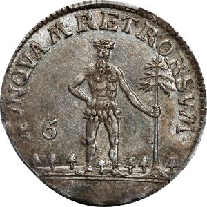 This specimen was lot 74515 in Stack's Bowers Collectors Choice sale (Costa Mesa, CA, September 2023), where it sold for $100. The catalog description[1] noted, "GERMANY. Brunswick-Luneburg: Brunswick. 6 Mariengroschen (1/6 Taler), 1767-IAP. Zellerfeld Mint. Karl I. PCGS AU-58. A well-struck and bright example of this popular type. Some weaknesses in the legends are noted for completeness. From the Robert C. Knepper Collection." This type was struck 1735-80 for Karl I and is common. Six mariengroschen made a quarter gulden, which was originally one sixth of a thaler but had slipped to one ninth thaler by the end of the reign. Mintmaster IAP appears 1763-72.