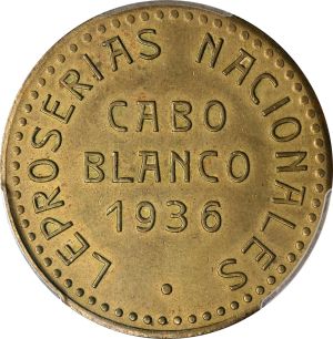 This specimen was lot 34513 in Stack's Bowers ANA sale (Chicago, August 2022), where it sold for $960. The catalog description[1] noted, "VENEZUELA. Cabo Blanco Leper Colony. Brass 20 Bolivares Token, 1936. PCGS MS-62. This large denomination leprosarium token issue is quite RARE and unusual, especially this attractive and near choice. The color is bronze-olive overall, with some muted brilliance and resounding sharpness. A great opportunity for the collector of this fascinating area of numismatics." Leprosy, a disease common in underdeveloped countries, was long feared to be spread by casual contact. Victims were herded into colonies and forced to use special coinage. The leprosarium at Cabo Blanco issued a series of tokens in 1936 ranging from 5 centimos to twenty bolivares, all in brass. When the institution closed in the 1970's, the tokens were redeemed and are today rare.