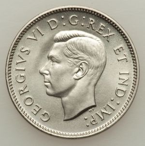 The SCWC lists this type for 1937-42 in substantial numbers. Wartime issues were brass or chrome plated steel. This specimen was part of lot 33820 in Heritage sale 3038 (Dallas, January 2015), which sold for $1,527.50. The catalog description[1] noted, "George VI Six Piece Specimen Set 1937, KM-SS35. This is the scarcer set with mirror-like fields consisting of Cent to Dollar. Housed in its original case from the Canadian mint in Ottawa. Reported mintage of 75 Specimen Sets."