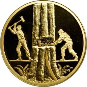 This specimen was part of lot 40063 in Stack's Bowers NYINC sale (New York, January 2019), which sold for $14,400. The catalog description[1] noted, "Impressive Collection of $200 Commemorative Issues. CANADA. Assortment of $200 Commemoratives, 1990-2012. CHOICE BRILLIANT PROOF. 21 pieces in lot. ...Second set, 2002-2012: Fr-57; Fr-64; Fr-70; Fr-77; Fr-88; Fr-98; Fr-125; Fr-150; Fr-175, missing issues from 2008, 2010, and 2013. Total weight 359.94 g (11.57 troy oz) of 0.917 fine gold." The profits extracted from the manufacture and sale of NCLT's caused the Royal Canadian Mint to scramble for ever more arcane topics, including this one honoring lumberjacks. Sadly, we lack the obverse image of this coin.