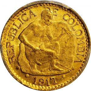 This specimen was part of lot 40453 in Stack's Bowers ANA sale (Philadelphia, August 2018), where it sold for $576. The catalog description[1] noted, "COLOMBIA. A pair of MS-64 (PCGS) 5 Pesos. Included are 1917; 1928. (Total: 2 pieces). From the Eldorado Collection of Colombian Coins." This type was struck 1913-19 and is common. This date comes in medal rotation only.