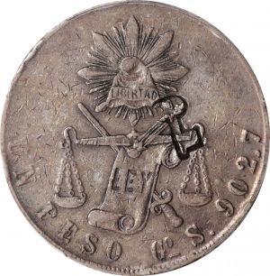 - (1872-77) 50 centavos, key countermark on a Mexico balance scale 50 centavos