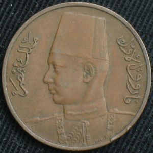 King Farouk was the second ruler of the Kingdom of Egypt, coming to the throne in 1936. The coinage of his reign was similar to his father, King Fuad I. He was, among other things, an avid coin collector and pieces from his collection still circulate in the market today. He abdicated after widespread discontent in 1952, at which point Egypt became a republic and officially terminated rule by royal lineage.