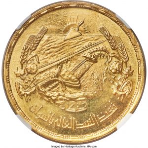 - AH 1377/1957 gold 5 pounds, fifth anniversary of the revolution