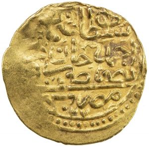 This specimen was lot 598 in Stephen Album sale 37 (Santa Rosa, CA, June 2020), where it sold for $238. The catalog description[1] noted, "OTTOMAN EMPIRE: Osman II, 1618-1622, AV sultani, Misr, AH1027, about 10% flat strike, full mint & date, bold VF." This rare coin from Egypt is a one year type. The SCWC lists this as an altin. Osman II ascended the throne at the age of 14 after his uncle was overthrown. After losing a campaign against the Poles, he himself was ousted and strangled by the Janissaries in 1622 at the age of 17.