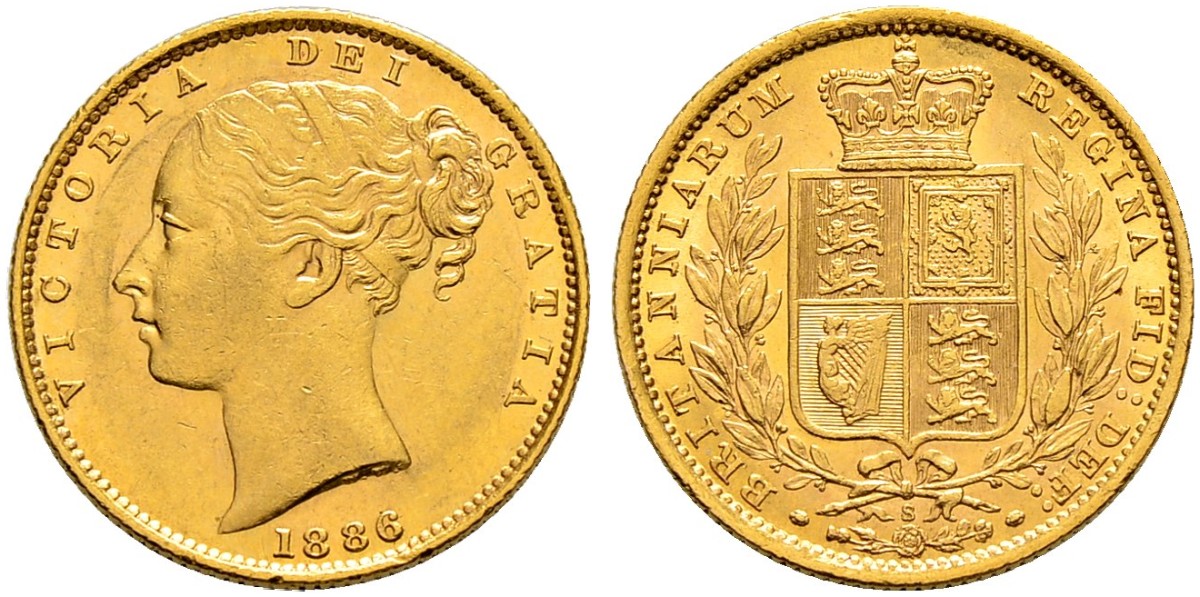 "Victoria, 1837-1901 Sovereign 1886. Sydney 7.99 g. S. 3858E. Fr. 11. Fast FDC / About uncirculated. ()"