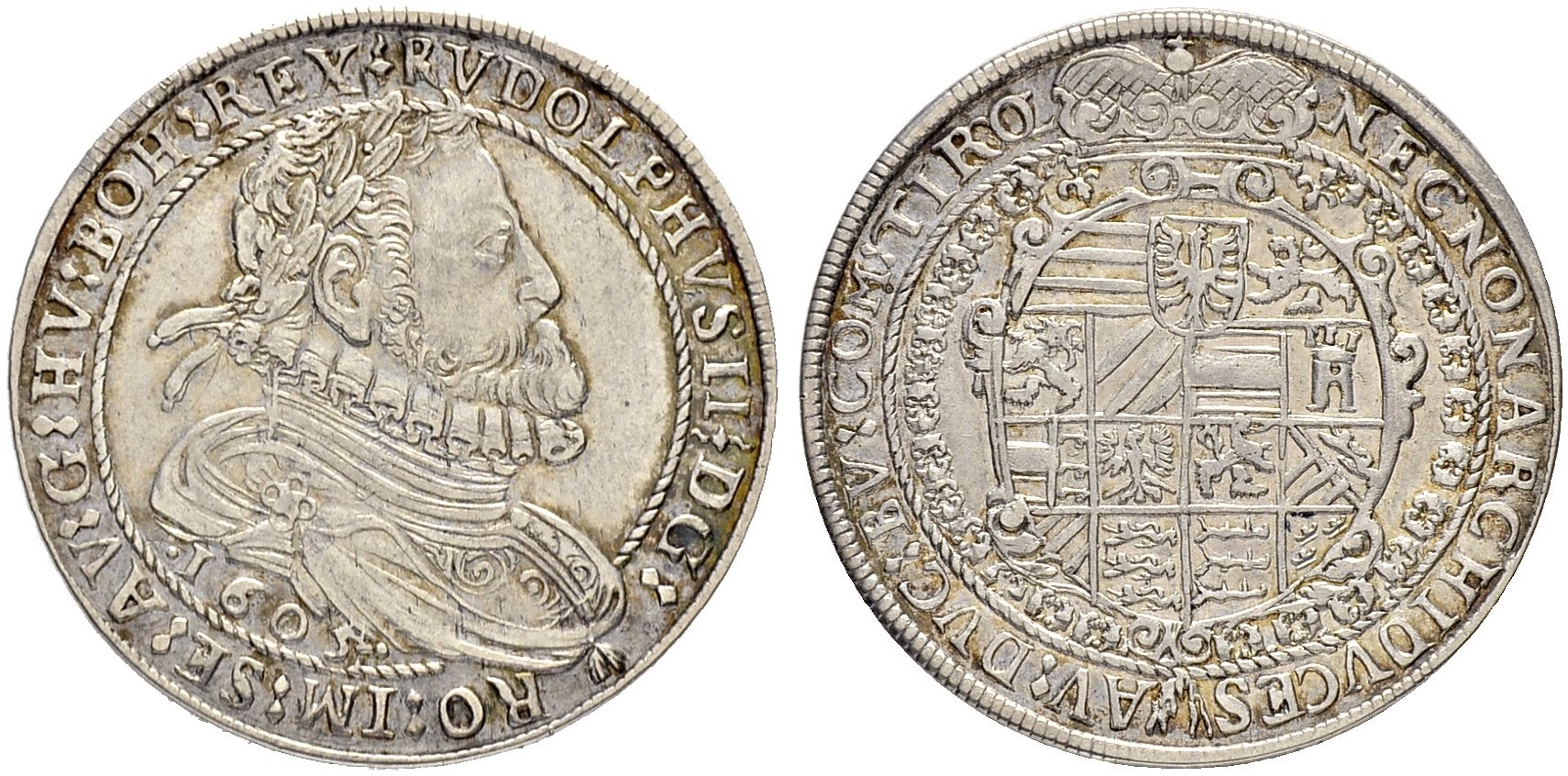 "HOLY ROMAN EMPIRE - AUSTRIA, Rudolf II. 1576-1612 Vierteltaler 1605. Hall 6.97 g. MT 359. Vorzüglich. (Holy Roman Empire, Rudolph II, 1576-1612, quarter thaler of 1605, Hall mint. Extremely fine.)"