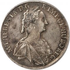 This specimen was lot 42113 in Stack's Bowers Winter sale (Baltimore, November 2015), where it sold for $329. The catalog description[1] noted, "BOHEMIA. Taler, 1757. Maria Theresa (1742-80). PCGS EF-45 Secure Holder. Dav-1136a; KM-765. Original striking of a Maria Theresa silver Taler in high circulated grade. Totally free of any problems. A great opportunity for world crown collectors."