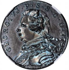 This specimen was lot 23104 in Stack's Bowers NYINC sale (New York, January 2018), where it sold for $900. The catalog description[1] noted, "GREAT BRITAIN. Pattern 1/2 Penny, 1799. Ayrshire Mint. George, Prince of Wales as Steward of Scotland. NGC PROOF-65 BN. D&H-5; Forrer-vol. IV pg. 82#3 (for Milton) & vol. II pg. 170 (for Fullerton). RARE. Plain edge. Struck by J. Milton for Colonel Fullerton of Scotland. Exceptional strike details with lovely electric blue highlights over lovely chocolate brown surfaces."