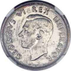This specimen was part of lot 30610 in Heritage sale 3040 (Chicago, April 2015), which sold for $1,938.75. The catalog description[1] noted, "George VI 8 Coin Certified Proof Set 1944, KM-PS16. Mintage: 150 sets. All coins certified by NGC as follows: Farthing, PR65 Brown, 1/2 Penny, PR64 Brown, Penny, PR65 Brown, 3 Pence, PR64, 6 Pence, PR66, Shilling, PR63, 2 Shillings, PR65, 2.5 Shillings, PR64. A most attractive Proof set, featuring three bronze coins that display glossy, chestnut-brown color and impeccably struck design elements. The remaining silver denominations all present frosty, mirrored fields with a dramatic amount of iridescent rainbow tone throughout. A superb, matching set, with incredible eye appeal. Scarce in these select designations and highly-collectible as such."