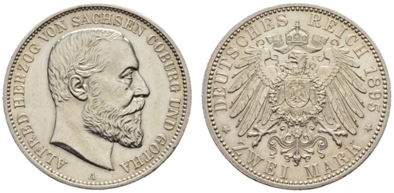 "Sachsen-Coburg-Gotha, Herzogtum, Alfred, 1893-1900 2 Mark 1895. Berlin 11.12 g. J. 145. KM 149. Vorzüglich-FDC. (duchy of Saxe-Coburg-Gotha, Alfred, 1893-1900, two mark of 1895, Berlin mint, extremely fine to uncirculated.)"