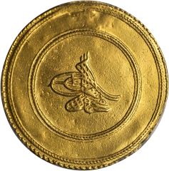 This specimen was lot 25065 in Stack's Bowers NYINC sale (New York, January 2018), where it sold for $840. The catalog description[1] noted, "TURKEY. 3 Altin, AH 1143. Mahmud (AH 1143-68 (1730-54)). PCGS Genuine--Damage, EF Details Secure Holder. An enigmatic type unlike the KM-238 triple altin we are offering in this sale as it lacks the decorative arabesques on both sides. Evidence of repair at 12 o'clock plus the resulting cleaning. Ex: Hans M. F. Schulman."