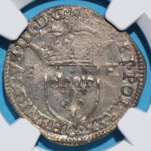 This douzain is the first type struck for Henry III (the second type has two lilies and two crowns on the reverse). It was minted at 23 mints 1575-96 and some of the mintages are reported to be in the millions. The issues after 1589 are posthumous. It had a face value of 12 deniers tournois. Sombart reports only two known of this date.