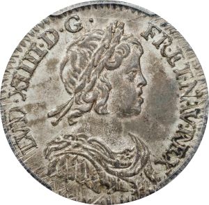 The specimen shown is a douziéme d'écu à la mèche courte struck in Paris at the Matignon shop during the minority of Louis XIV of France (r. 1643-1715). This is a "short lock" variety. The "long lock" variety, struck 1646-60, is distinguished by the longer lock of hair growing in front of the young king's ear. Altho the "short lock" variety was struck only three years, millions were minted in that time, so the type is not rare. The second specimen was lot 74712 in Stack's Bowers Collectors Choice sale (Costa Mesa, CA, September 2025), where it sold for $168. The catalog description[1] noted, "FRANCE. 1/12 Ecu, 1644-A. Paris Mint. Louis XIV. PCGS MS-62. Variety with point. From the Richard August Collection. Ex: Enterprise Collection (Heritage Numismatic Auctions, Inc. - 1/2004) Lot # 14615."