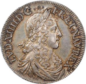 This specimen was lot 74691 in Stack's Bowers Collectors Choice sale (Costa Mesa, CA, September 2025), where it sold for $840. The catalog description[1] noted, "FRANCE. 1/2 Ecu, 1660-K. Bordeaux Mint. Louis XIV. PCGS AU-55. From the Richard August Collection. Ex: Enterprise Collection (Heritage Auctions - 1/2004) Lot # 14666." Droulers[2] devotes catalog numbers 530 thru 557 to describe the numerous variations of this bust, introduced in 1659 when the king was 21 years old. This subtype of the demi-écu juvénile was struck 1660-61 and is a common date for the type but it is still priced double a common date demi-écu à la mèche longue.