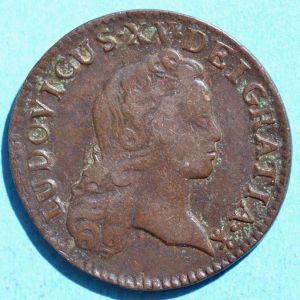 This type was the first half sol issued during the reign of Louis XV. It was minted 1719-24 at ten mints, of which Metz (shown here) and Rheims (mintmark "S") are the most common. Few survive in nice condition.