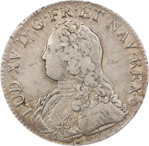 This specimen was lot 74728 in Stack's Bowers Collectors Choice sale (Costa Mesa, CA, September 2025), where it sold for $85. The catalog description[1] noted, "FRANCE. Ecu, 1729-AA. Metz Mint. Louis XV. PCGS Genuine--Cleaned, VF Details." This coin is an écu aux branches d'olivier from the Metz mint. This weight standard was used for the écu from 1726 to 1792.