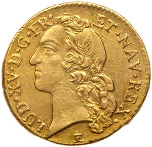 This specimen was lot 1322 in Goldberg sale 128 (Los Angeles, June 2022), where it sold for $1,500. The catalog description[1] noted, "France. Louis d'or au bandeau, 1755-& (Aix). Louis XV. Pop 1; 1 in 64; only 2 graded at PCGS. PCGS graded AU-58." The louis d'or au bandeau was introduced in 1740 and was struck at all the mints. Most issues of this type by the Aix mint are rare, as is this one.