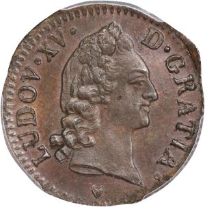 This specimen was lot 74759 in Stack's Bowers Collectors Choice sale (Costa Mesa, CA, September 2025), where it sold for $192. The catalog description[1] noted, "FRANCE. 1/2 Sol, 1773-&. Aix Mint. Louis XV. PCGS MS-62 Brown. From the Richard August Collection." The specimen shown is a demi-sol d'Aix minted at Aix (hence the name) 1767-73 at the end of the reign of Louis XV of France. No other mint struck this type, which was probably authorized to consume copper from local mines. Numista states this type as destined for the newly conquered Corsica. Its face value was 6 deniers, half sol or 1/240 of a silver écu. The type is common in low grade (the SCWC values it at $3 in VG) but well made specimens are scarce.