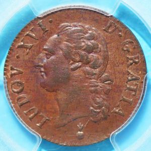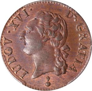 The first specimen was lot 74781 in Stack's Bowers Collectors Choice sale (Costa Mesa, CA, September 2025), where it sold for $264. The catalog description[1] noted, "FRANCE. 1/2 Sol, 1787-AA. Metz Mint. Louis XVI. PCGS MS-63 Brown. From the Richard August Collection." This is a demi-sol a l'écu of the Metz mint, struck during the reign of Louis XVI (1774-93). Droulers[2] notes the type as common but the date as somewhat scarce. The type was issued 1777-91.