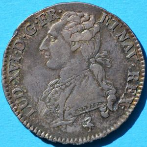 - Obverse: uniformed and peruked bust of Louis XVI facing left, legend LUD XVI D. G. FR. ET NAV. REX. (Louis XVI, by the grace of God, king of France and Navarre).