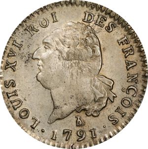 This specimen was lot 71058 in Stack's Bowers Collectors Choice sale (Costa Mesa, CA, September 2025), where it sold for $960. The catalog description[1] noted, "FRANCE. Constitution. 30 Sols, 1791-T/Year 3. Nantes Mint. Louis XVI. PCGS Genuine--Cleaned, Unc Details. Second semester. Despite the noted minor cleaning, this otherwise uncirculated specimen provides a golden-olive hue and a fairly even strike. From the Richard Margolis Collection (acquired from Serge Boutin in Paris in September 1961 for $3.65)." Altho the French Revolution famously began with the fall of the Bastille in June 1789, the upheaval was not immediately reflected in the coinage, which continued to be issued using the designs of the ancien régime. In 1791, the first "constitutional" coins appeared, including 3 deniers (= 1 liard), 6 deniers (= 2 liards), 12 deniers (= 1 sol), 2 sols, 15 sols (= 1/8 écu) and 30 sols. "Constitutional" demi-écus and écus appeared in 1792. Only then were the old royal designs discontinued. In 1793, the king was guillotined and a republic instituted. The republicans issued some brass sols and 2 sols and a silver écu de 6 livres before abandoning the system altogether in favor of the franc in 1795. The specimen shown is a 30 sols (equals 1/4 écu) of the Constitutional period (1791-93) during the French Revolution. It was struck at the Nantes mint (mintmark "T") and is a better date of its type.