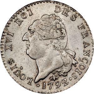 This specimen was lot 71060 in Stack's Bowers Collectors Choice sale (Costa Mesa, CA, September 2025), where it sold for $384. The catalog description[1] noted, "FRANCE. Constitution. 30 Sols, 1792-D/Year 4. Lyon Mint. Louis XVI. PCGS AU-58. Second semester. A lofty and fairly lustrous specimen, this lightly toned example stands as the only such representative of the type in the PCGS census. From the Richard Margolis Collection (acquired from Émile Bourgey in Paris on 23 October 1962 for $1)." Altho the French Revolution famously began with the fall of the Bastille in June 1789, the upheaval was not immediately reflected in the coinage, which continued to be issued using the designs of the ancien régime. In 1791, the first "constitutional" coins appeared, including 3 deniers (= 1 liard), 6 deniers (= 2 liards), 12 deniers (= 1 sol), 2 sols, 15 sols (= 1/8 écu) and 30 sols. "Constitutional" half écus and écus appeared in 1792. Only then were the old royal designs discontinued. In 1793, the king was guillotined and a republic instituted. The republicans issued some brass sols and 2 sols and a silver écu de 6 livres before abandoning the system altogether in favor of the franc in 1795.