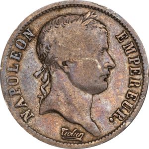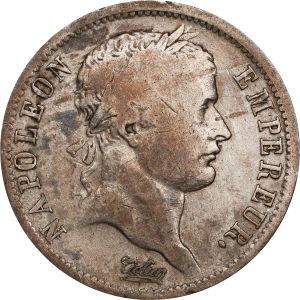 The first specimen was lot 71356 in Stack's Bowers Collectors Choice sale (Costa Mesa, CA, September 2025), where it sold for $312. The catalog description[1] noted, "FRANCE. Empire. 2 Francs, 1810-L. Bayonne Mint. Napoleon I. PCGS VF-20. Variety with mintmark on the right. The only example of the type in the PCGS population report, this wholesome yet fairly well circulated specimen offers a charming overall appearance. From the Richard Margolis Collection (acquired from Mike Geen at NYINC on 12 December 1980 for $100)." The second specimen was lot 71357 in Stack's Bowers Collectors Choice sale (Costa Mesa, CA, September 2025), where it sold for $456. The catalog description[1] noted, "FRANCE. Empire. 2 Francs, 1810-L. Bayonne Mint. Napoleon I. PCGS Genuine--Cleaned, Fine Details. Variety with mintmark on the left. A well circulated and cleaned example of the emission. From the Richard Margolis Collection (acquired from Superior in 1996 for $27.50). Ex: Superior (6/1996) Lot # 3577." This type was struck 1809-14 during the reign of Napoleon I from numerous mints. This date is known with the mintmark on the right and the mintmark on the left; the Margolis collection had both, which we show here.