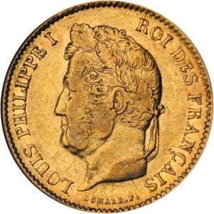Specification: 12.90 g, 0.900 fine gold, 26 mm diameter, edge lettered DIEU PROTEGE LA FRANCE, designed by Joseph François Domard (1792-1858).