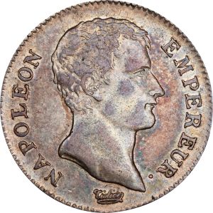 This specimen was lot 71376 in Stack's Bowers Collectors Choice sale (Costa Mesa, CA, September 2025), where it sold for $384. The catalog description[1] noted, "FRANCE. Empire. Franc, Year 13-H (1804/5). La Rochelle Mint. Napoleon I. PCGS AU-50. Exceedingly wholesome and attractive, this near-Mint minor offers enticing carnival glass toning across both sides. From the Richard Margolis Collection (acquired from Lepczyk in 1984 for $40). Ex George Sobin Collection (Joseph Lepczyk - 3/1984) Lot # 1179 (part of)." This type was struck AN 12-14 only and is scarce, especially compared to the An 13-A (m. 2,452,806). It was demonetized in 1869. The catalog[2] notes 39 dates for the type, most very rare.