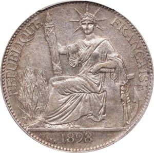 This specimen was lot 74475 in Stack's Bowers Collectors Choice sale (Costa Mesa, CA, September 2024), where it sold for $312. The catalog description[1] noted, "FRENCH INDO-CHINA. 20 Centimes, 1898-A. Paris Mint. PCGS AU-55. Pleasingly toned and only lightly circulated, this specimen retains a charming glint of lustrous brilliance among the protected areas." The denomination was reduced from 5.44 grams to 5.4 grams in 1896 and then debased from 0.900 to 0.835 fine silver in 1898. The twenty cent was struck in that form until 1916.